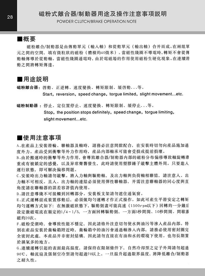 >> 磁粉式離合器/制動器用途及說明